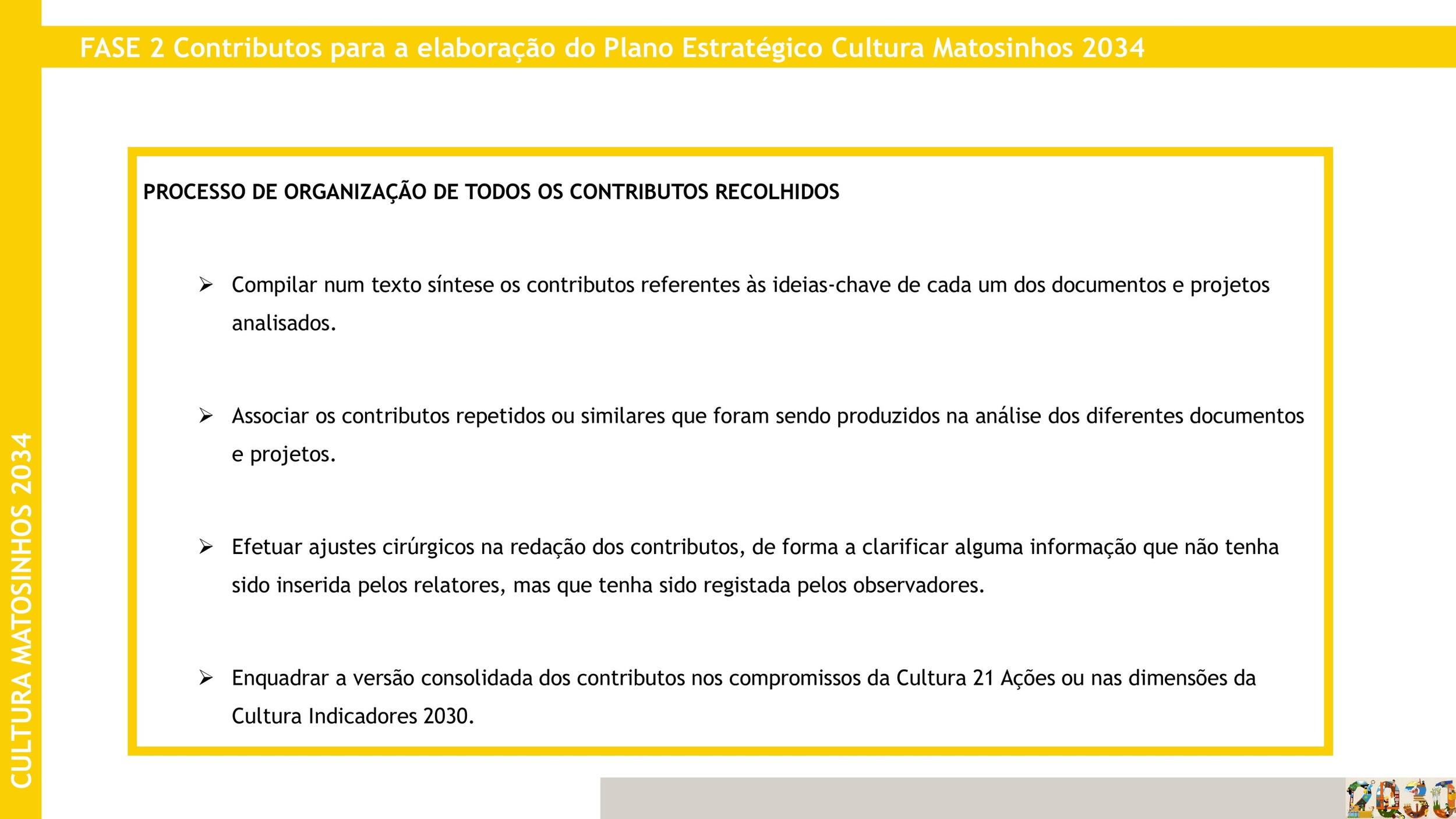 A elaboração do plano irá decorrer faseadamente e pretende ser um processo colaborativo e participativo, recolhendo o contributo das comunidades cultural, desportiva, económica e académica.